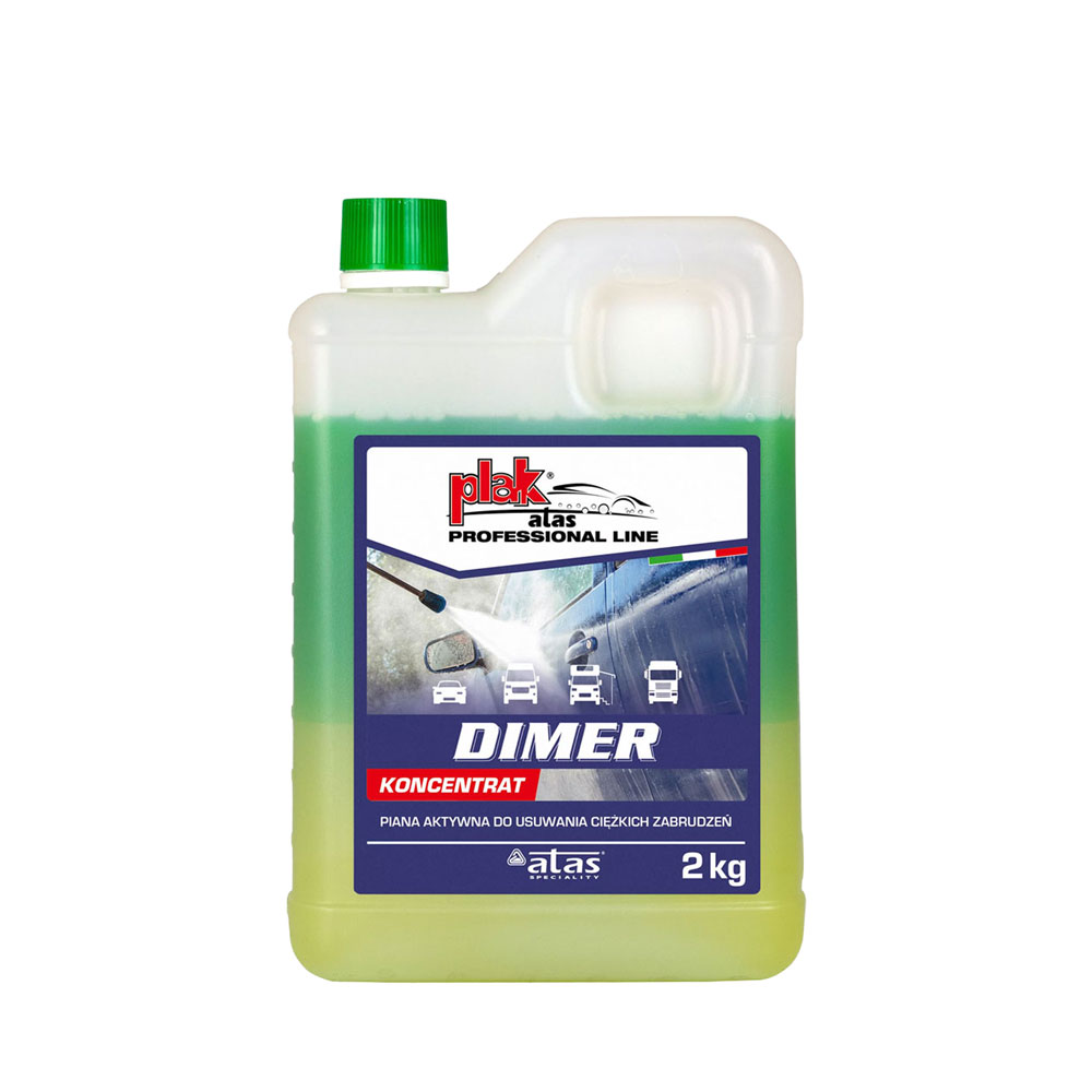 Atas Dimer to wysoce skoncentrowany dwuskładnikowy preparat pianotwórczy do mycia zewnętrznego, który skutecznie usuwa wszelkiego rodzaju zabrudzenia z powierzchni takich jak karoserie, podwozia, koła, części aluminiowe oraz plandeki. Produkt doskonale sprawdza się w myciu ciężarówek, maszyn budowlanych i przemysłowych, a także w czyszczeniu posadzek w garażach i warsztatach.