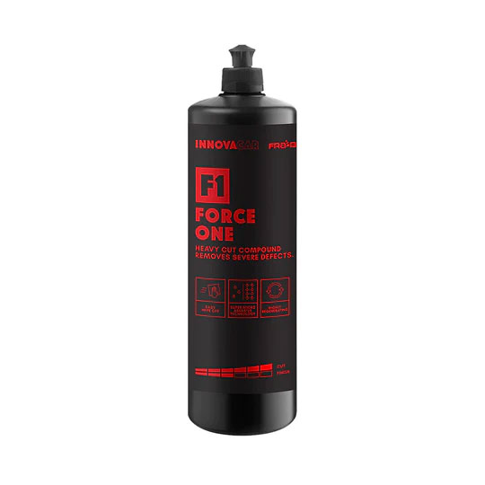 Innovacar F1 Force One to pasta polerska nowej generacji, charakteryzująca się dużą siłą tnącą. Jest to regenerująca pasta ścierna, która doskonale sprawdza się w usuwaniu głębokich zadrapań, a także w eliminacji utleniania i śladów po kwaśnych deszczach. Produkt jest wolny od silikonów, co czyni go bezpiecznym dla karoserii samochodowej.