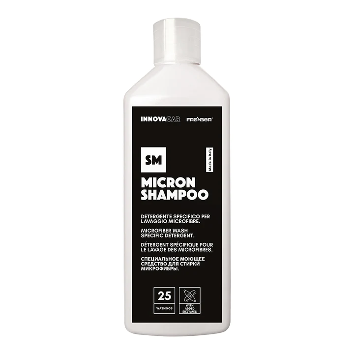 Innovacar SM Micron Shampoo – to specjalny detergent i środek czyszczący do akcesoriów i ściereczek z mikrofibry, padów polerskich oraz pokrowców samochodowych. Produkt jest odpowiedni zarówno do prania ręcznego, jak i w pralce.